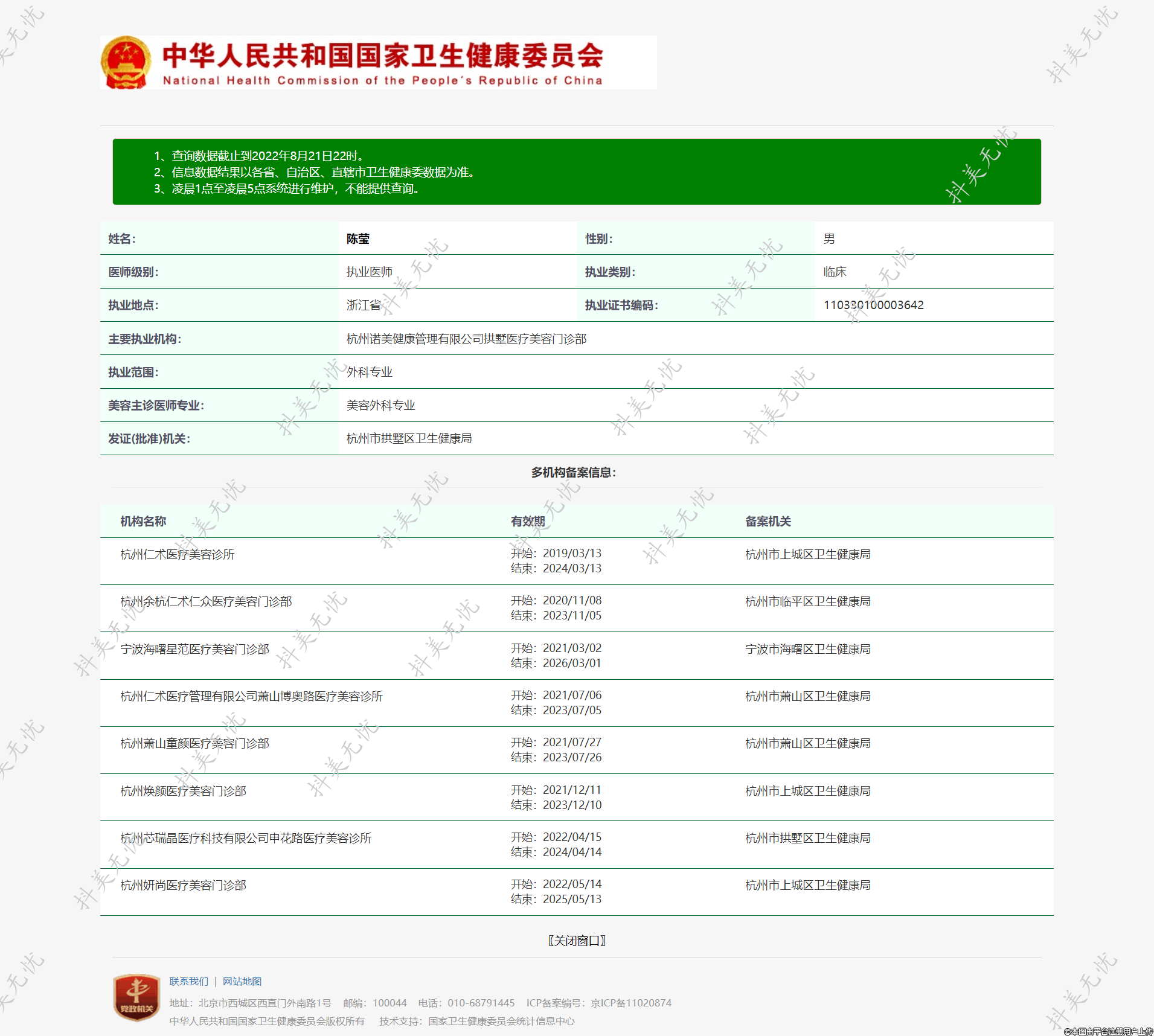 备案机关:杭州市临平区卫生健康局
