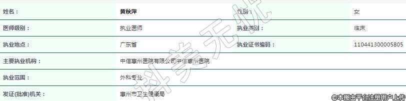 主要执业机构:中信惠州医院有限公司中信惠州医院