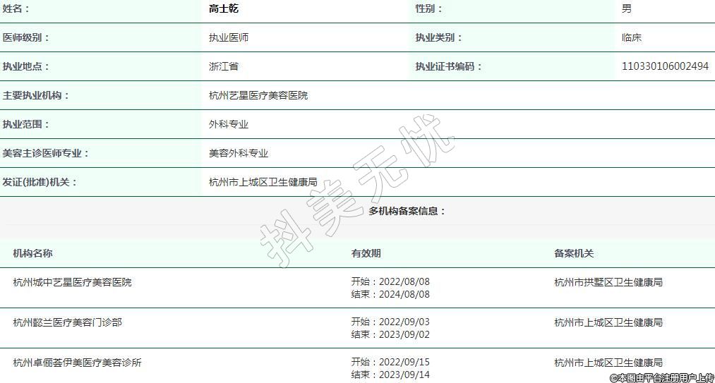杭州艺星医疗美容执业医师