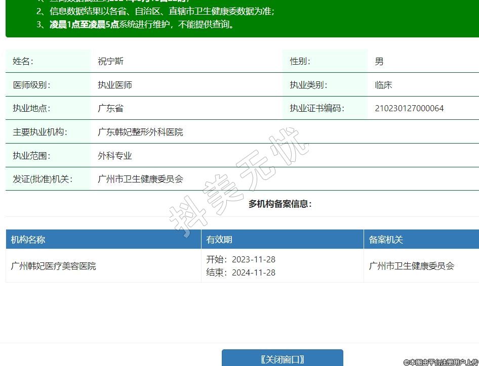 主要执业机构:广东韩妃整形外科医院