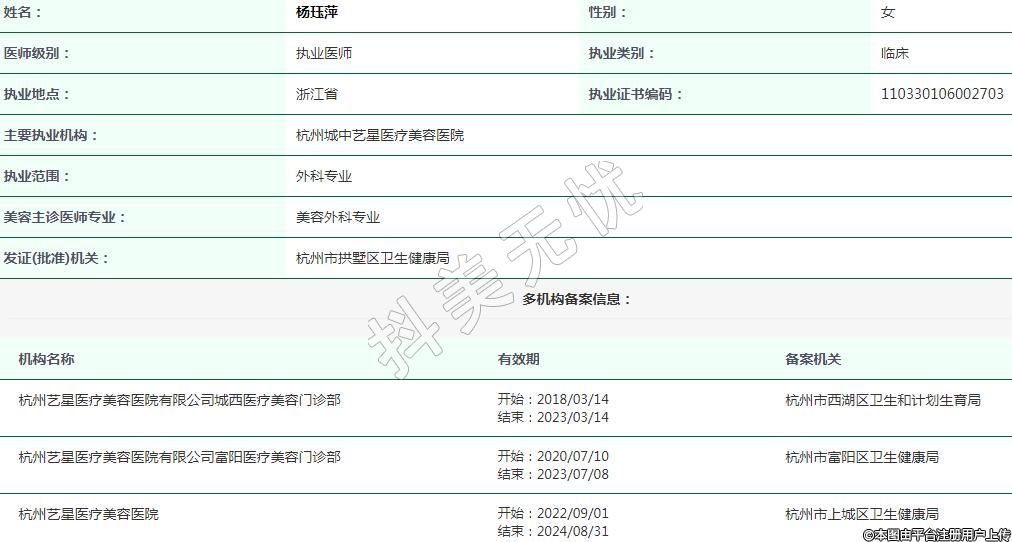 杭州艺星医疗美容医院有限公司富阳医疗美容门诊部