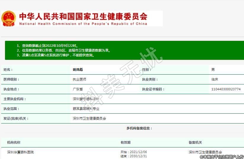 主要执业机构:深圳壹号眼科诊所
