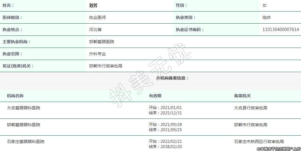 邯郸爱眼医院执业医师