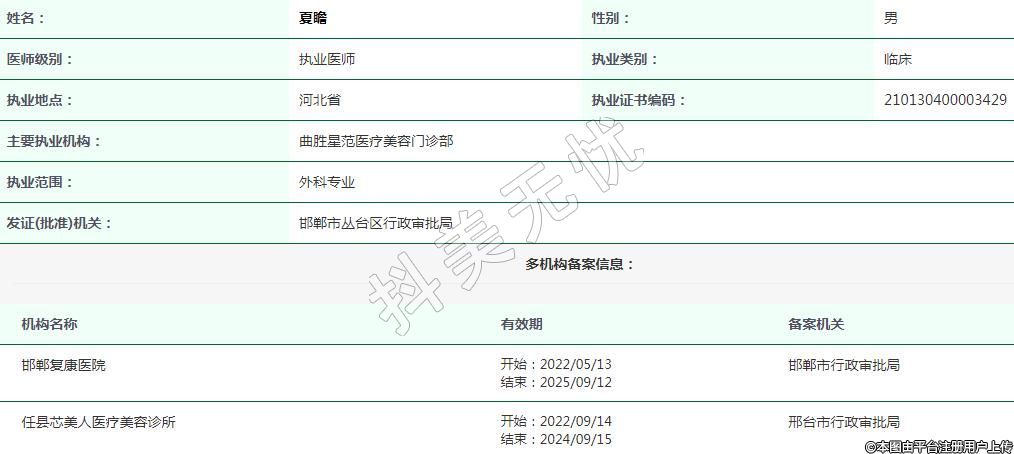 任县芯美人执业医师 -