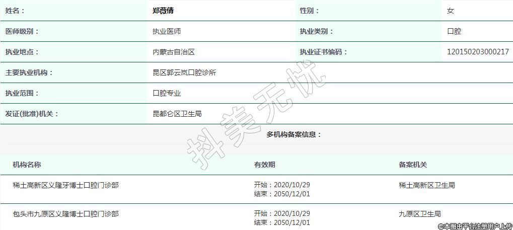包头市九原区义隆博士口腔执业医师 -