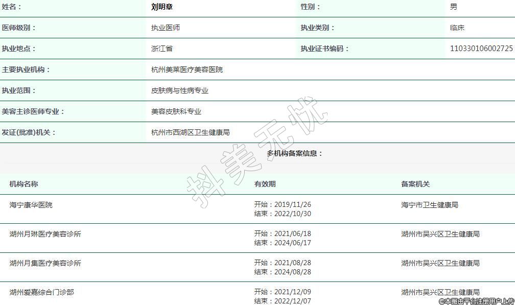 杭州美莱医疗美容执业医师