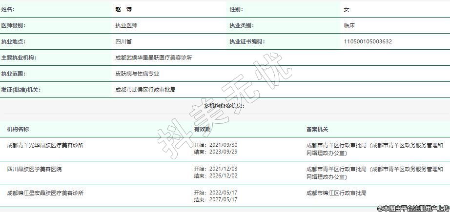 主要执业机构:成都武侯华星晶肤医疗美容诊所