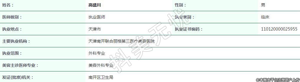主要执业机构:天津南开联合丽格第三医疗美容医院
