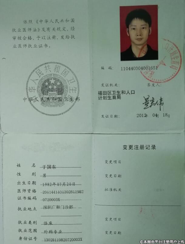 执业证书编码:110440304001651