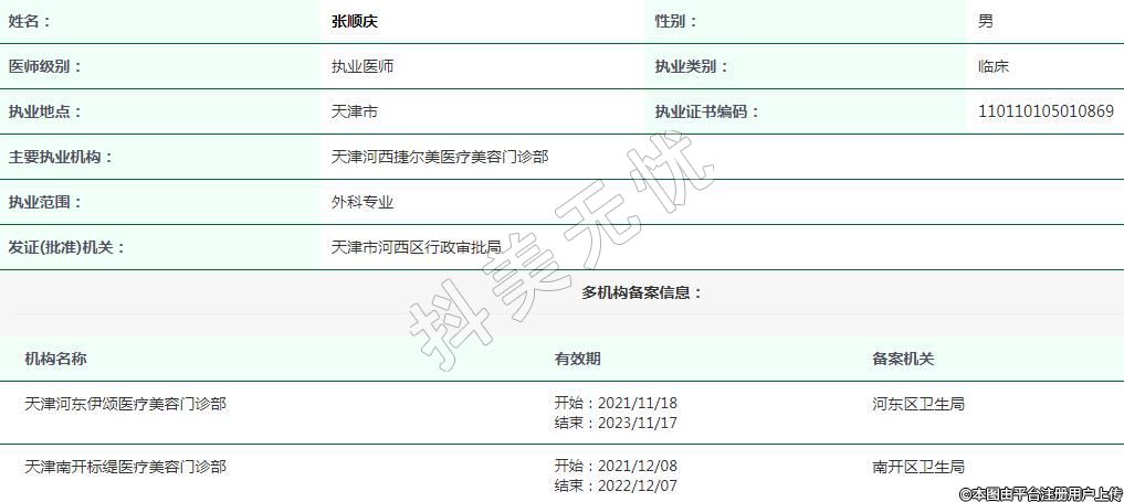 主要执业机构:天津河西捷尔美医疗美容门诊部