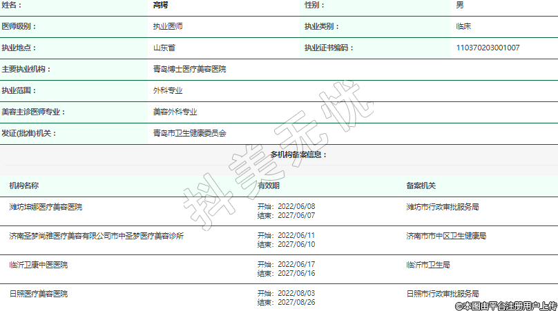 主要执业机构:青岛博士医疗美容医院