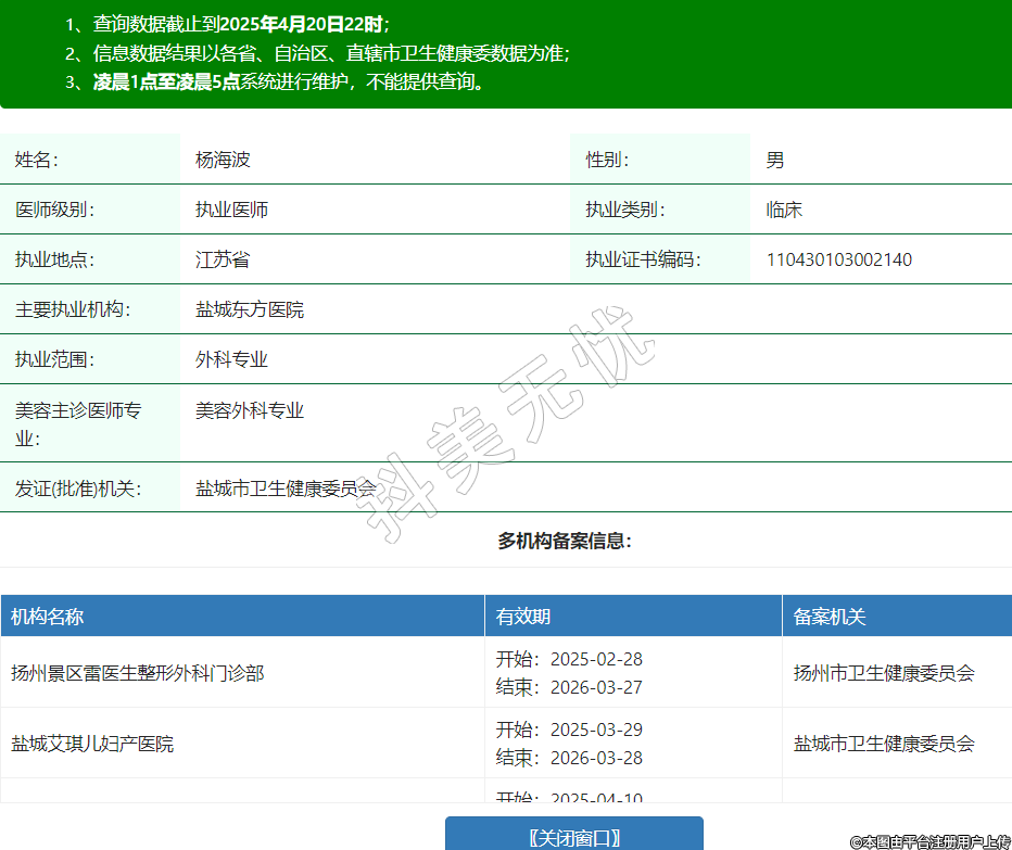 扬州景区雷医生整形外科门诊部
