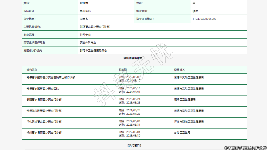 主要执业机构:邵阳曹家医疗美容门诊部