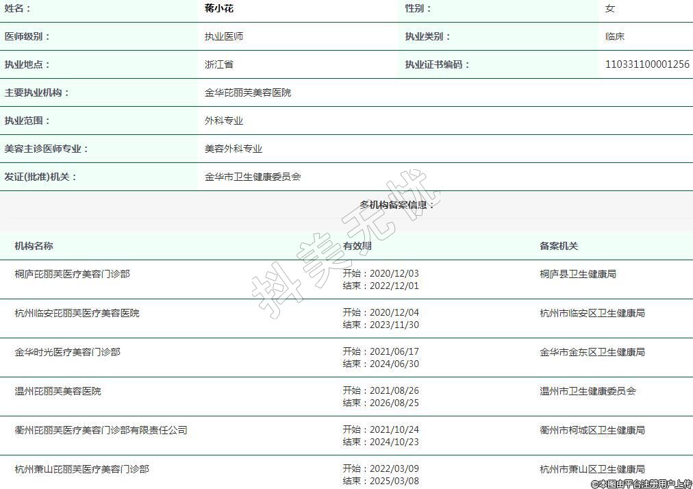 衢州芘丽芙医疗美容门诊部有限责任公司