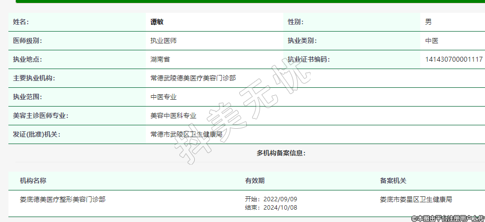 主要执业机构:常德武陵德美医疗美容门诊部