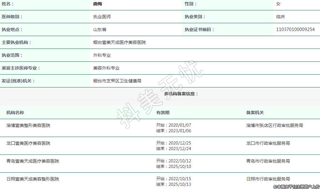 烟台壹美天成医疗美容执业医师