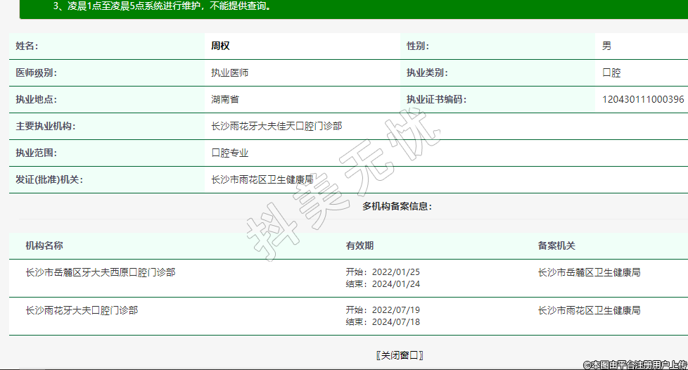 主要执业机构:长沙雨花牙大夫佳天口腔门诊部