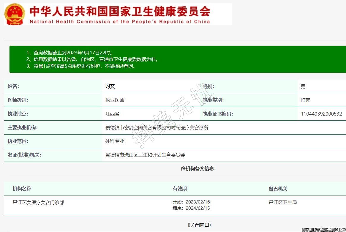 主要执业机构:景德镇市密龄空间美容有限公司时光医疗美容诊所