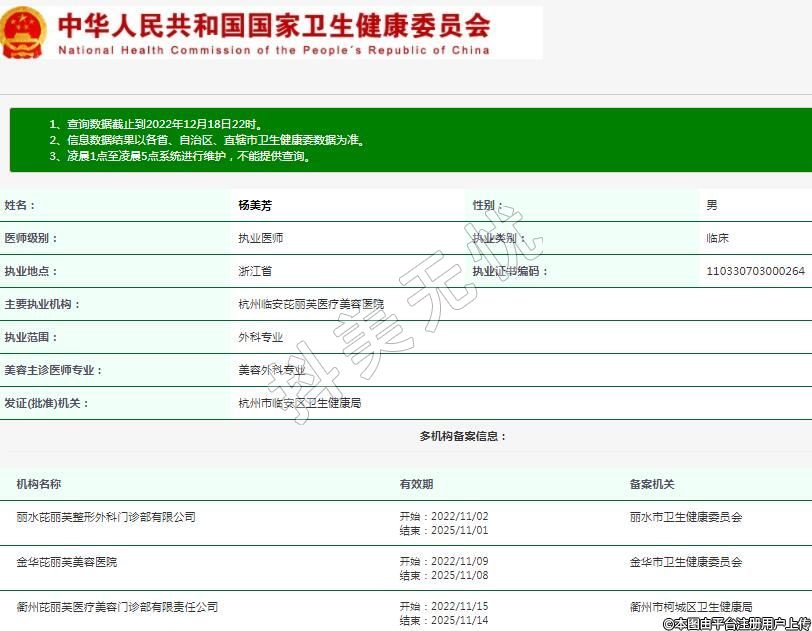 主要执业机构:杭州临安芘丽芙医疗美容医院