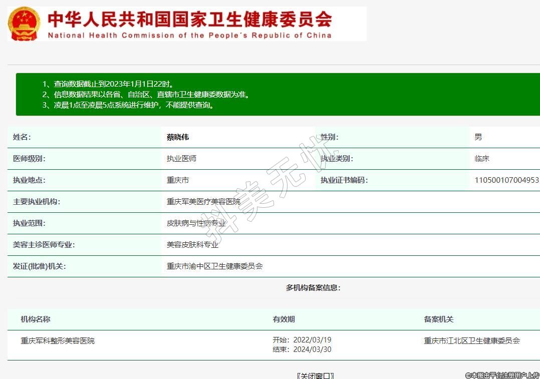 主要执业机构:重庆军美医疗美容医院