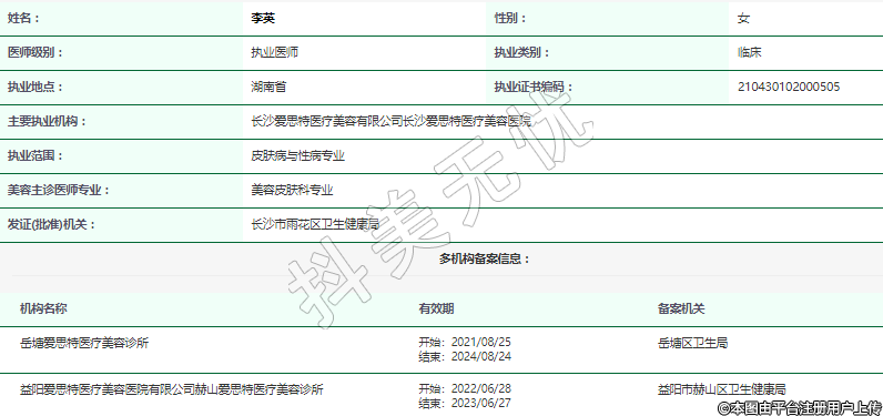 主要执业机构:长沙爱思特医疗美容有限公司长沙爱思特医疗美容医院