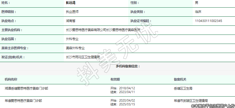 主要执业机构:长沙爱思特医疗美容有限公司长沙爱思特医疗美容医院