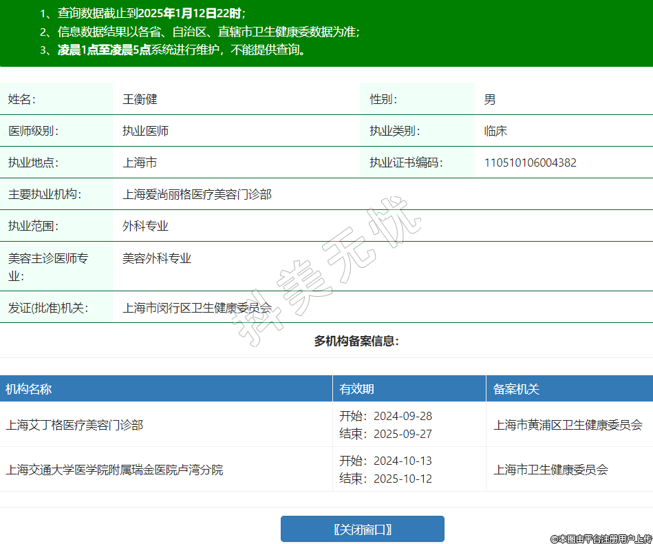 主要执业机构:上海爱尚丽格医疗美容门诊部