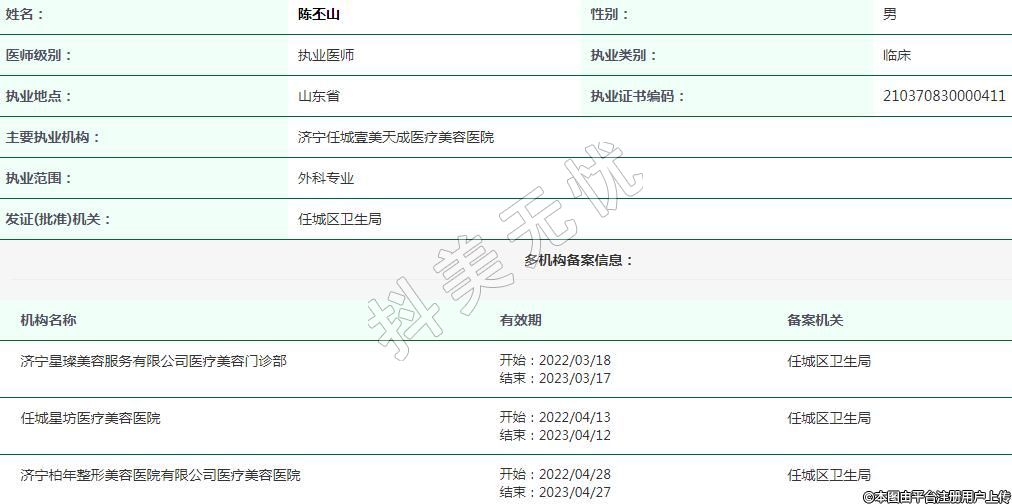 主要执业机构:济宁任城壹美天成医疗美容医院