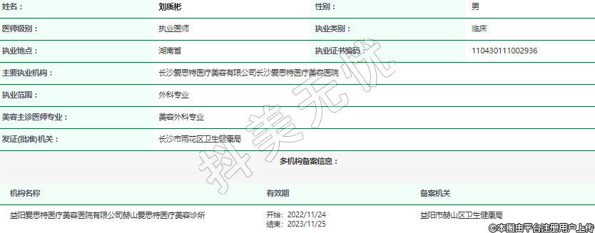 主要执业机构:长沙爱思特医疗美容有限公司长沙爱思特医疗美容医院
