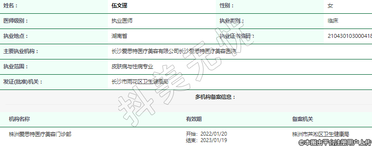 主要执业机构:长沙爱思特医疗美容有限公司长沙爱思特医疗美容医院
