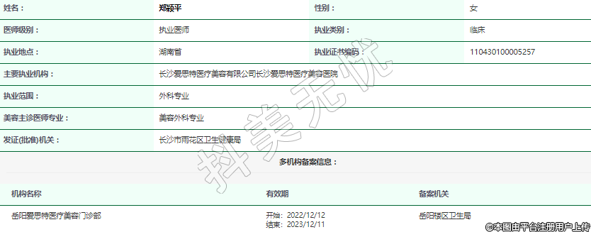 主要执业机构:长沙爱思特医疗美容有限公司长沙爱思特医疗美容医院