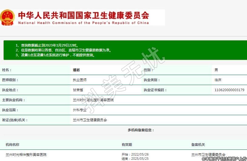 主要执业机构:兰州时光激光整形美容医院