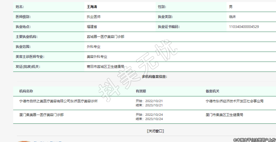 美容主诊医师专业:美容外科专业