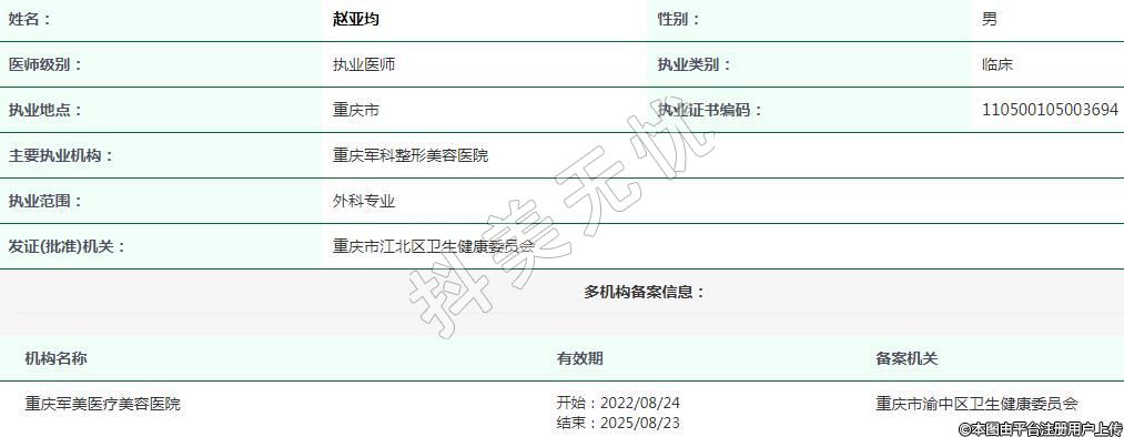 主要执业机构:重庆军科整形美容医院