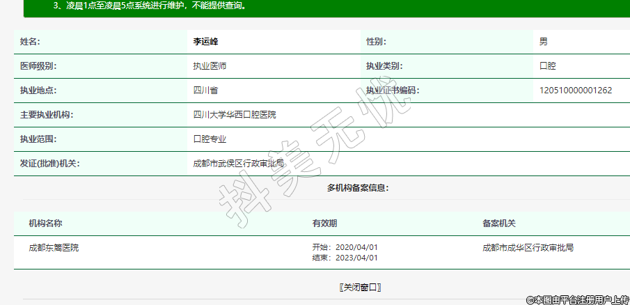 主要执业机构:四川大学华西口腔医院
