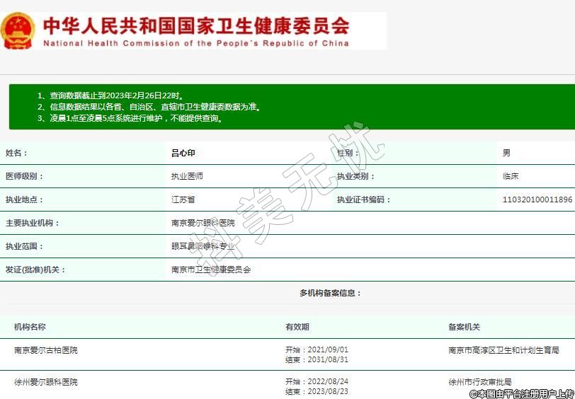 主要执业机构:南京爱尔眼科医院