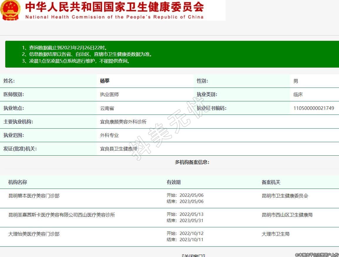 主要执业机构:宜良康颜美容外科诊所