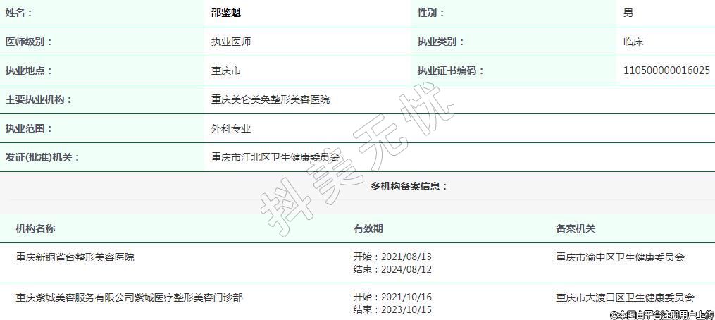 重庆美仑美奂医疗美容执业医师