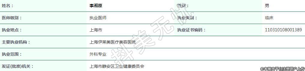 上海伊莱美医疗美容执业医师