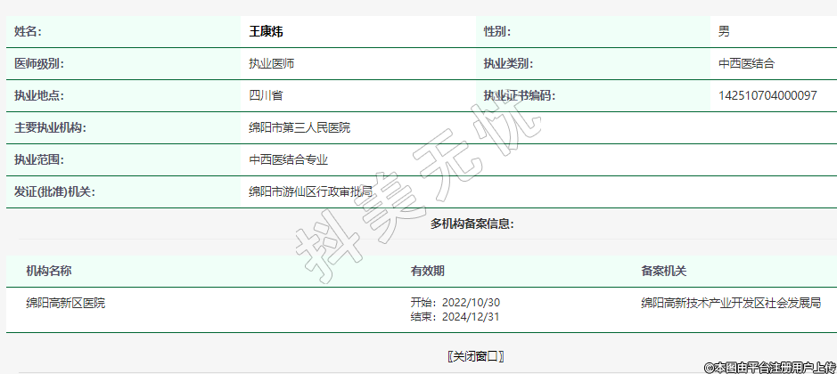 执业范围:中西医结合专业