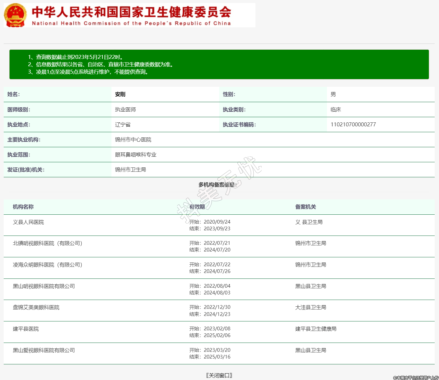 发证(批准)机关:锦州市卫生局