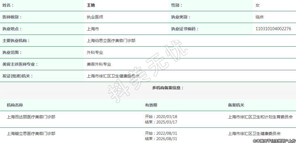 上海百达丽医疗美容执业医师