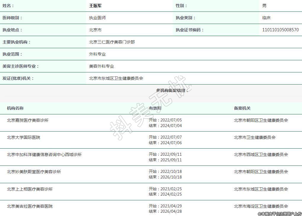 主要执业机构:北京三仁医疗美容门诊部