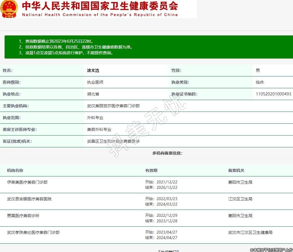 主要执业机构:武汉美丽芭莎医疗美容门诊部