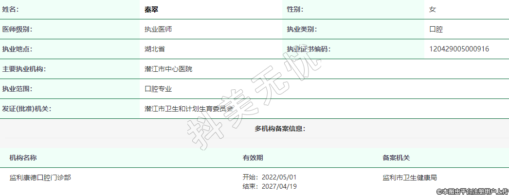 机构名称:监利康德口腔门诊部