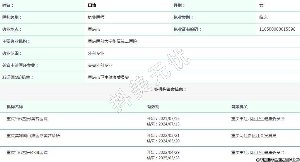 重庆当代整形外科执业医师 -