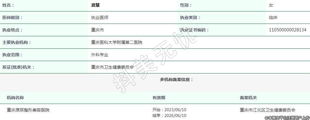 重庆原辰整形美容执业医师 -