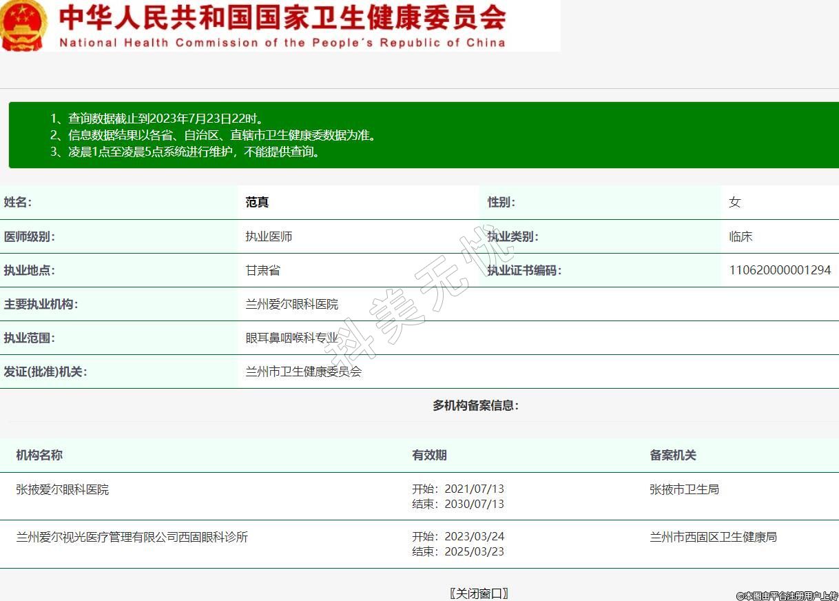 机构名称:张掖爱尔眼科医院