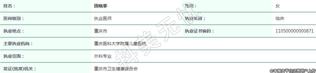 主要执业机构:重庆医科大学附属儿童医院