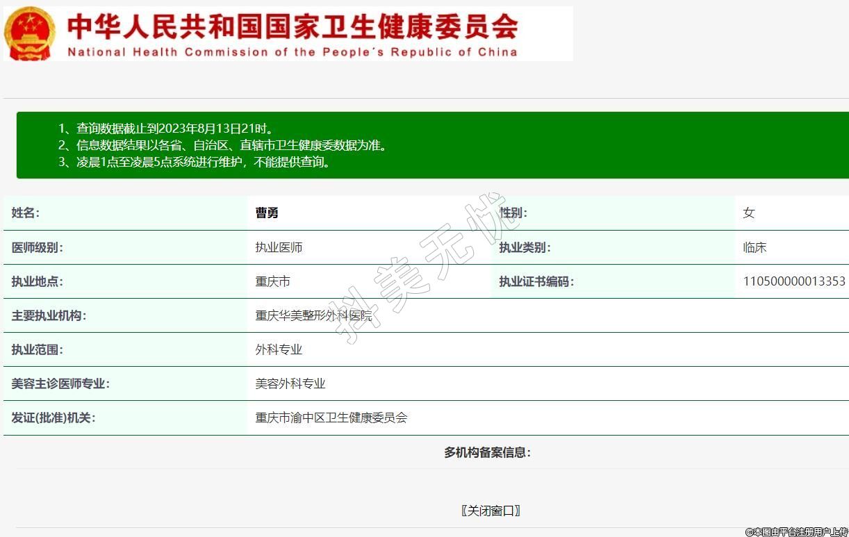主要执业机构:重庆华美整形外科医院